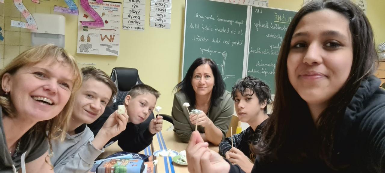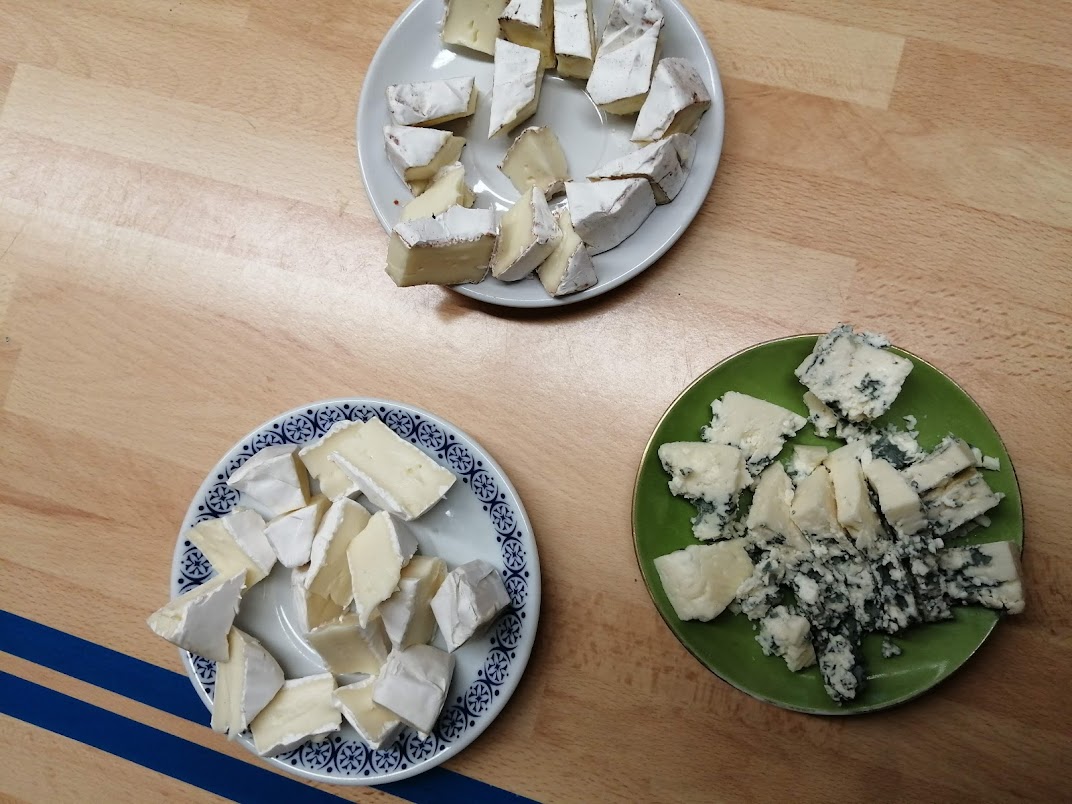 Plísně - udělali jsme si ochutnávku plísňových sýrů. Přes zvětšovací sklíčko jsme pozorovali, jak vypadá plíseň zblízka.